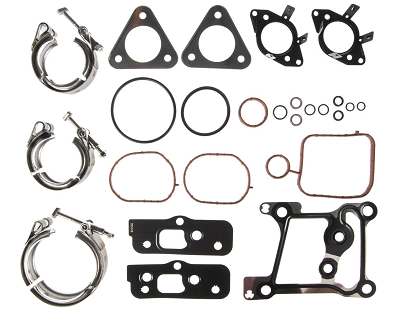 This comprehensive, professional grade solution for installing the turbo on 2015-2019 6.7L Powerstroke engines provides a direct replacement factory style fitment that eliminates exhaust leaks and ensures proper oil and coolant flow. Every component in this set is manufactured to meet or exceed OEM specifications, utilizing high-performance multi-layered steel (MLS) and fluoroelastomer seals designed to withstand the extreme heat and pressure typical of heavy duty diesel engines.